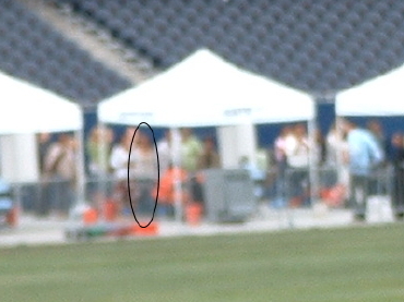 This picture (also blurry because Mom was shaking from the cold), is of my actual audition at table 11 (my lucky number, or so I thought). The rain had stopped at this point, but there was a fairly consistent 20 mph wind, and the temperature was still in the 50s. Those conditions made singing pretty difficult. However, I felt like I did a good job. I sang a 30-second clip of "Ain't Too Proud To Beg," which was a last minute change. I wanted to sing something upbeat because I thought it would be more cheerful in the dismal weather. I was second to sing in my group of four. After we finished, the judge said, "I know it's cold out here, and I appreciate you coping with it all, but I'm going to have to pass this round." My wristband was cut, and I was escorted out of the stadium. | |||||||||||||||||||||||||||||||||||||||||||||||||