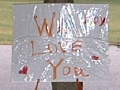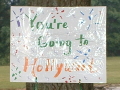 The day before I left, I was backing out of my driveway to go to work, and I saw all these signs on trees in my yard that my friend Diane had hung early that morning. Because it was a bit rainy (an omen of my