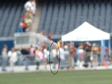 This picture (also blurry because Mom was shaking from the cold), is of my actual audition at table 11 (my lucky number, or so I thought). The rain had stopped at this point, but there was a fairly consistent 20 mph wind, and the temperature was still in the 50s. Those conditions made singing pretty difficult. However, I felt like I did a good job. I sang a 30-second clip of "Ain't Too Proud To Beg," which was a last minute change. I wanted to sing something upbeat because I thought it would be more cheerful in the dismal weather. I was second to sing in my group of four. After we finished, the judge said, "I know it's cold out here, and I appreciate you coping with it all, but I'm going to have to pass this round." My wristband was cut, and I was escorted out of the stadium. | |||||||||||||||||||||||||||||||||||||||||||||||||