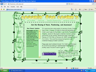 Croonin' for Crohn's, to raise money for Crohn's disease. It was so successful that we decided to do it again in 2008. The vocalists were friends of ours from around the region. The web site was used to inform the public about the event and to thank the sponsors.