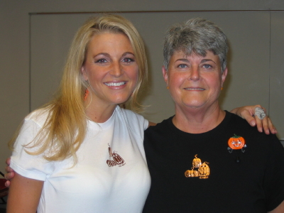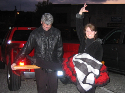 BMS today and we wore our matching pumpkin shirts! Then we went to Bedford's "Trunk or Treat" in the evening. My supergoodfriends Jon & Di were dressed in a unique costume; Di was a ballerina and Jon was her "ballet bar." Cute! See pictures to the right. In web site news, I changed the little pumpkin cursor to a little turkey cursor! (Only Internet Explorer users can see the stylized cursors.) I also added some cute cursors to four of my slideshows: the