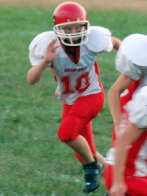 BMS football season is in full swing. Check out the pics of him to the right! For more Fall fun, Mom and I have signed up for a quilting class, offered by the local Parks Dept., that will begin on October 1. We hope to be professional quilters by November! Something to which I'm also looking forward this Fall is the