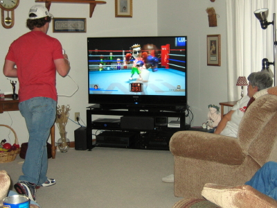 Sam boxing on the Wii