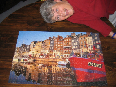 jokai@jokai.net! In other news, Mom and I finished another puzzle, and it was a toughie. As you can see, we were excited to get it done. Puzzling has helped keep my mind off my sidelined-from- running-status. I can still cheer for my friends who are training, though!