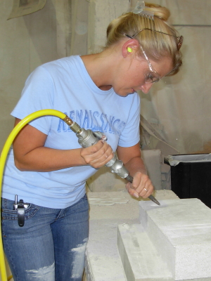 Jo carvin' some limestone
