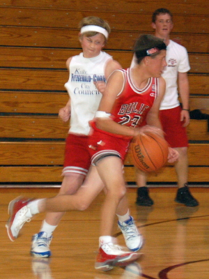 click here to check it out.) Also on Friday, we chaperoned a school dance and enjoyed a pick-up basketball game. (The picture to right made me laugh because I thought it looked like Mac was kidney-punching Chase.) To wrap up a great weekend, Ed and I
