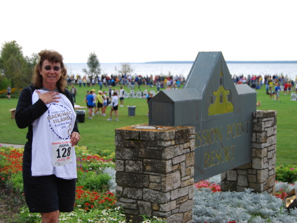 trained for eight weeks. I reread Bid Time Return (the book on which Somewhere In Time is based), and the sequel, Memoirs of Elise. I watched the movie. Our friends Deb and Paul made their vacation plans to coincide with ours. On Friday, we began the 565 mile trip to the island. More than 400 miles into the trip, we were forced to stop at the MidMichigan Hospital in Clare, Michigan. Extreme pain from Crohn’s disease was causing me great discomfort. After spending eight hours there for medicine and tests, Ed and I headed back to Bedford, arriving just 25 hours after we left. What a disappointment. Big thanks go to the Pattons for capturing some great Mackinac pics for us, and for picking up my race number and shirt. I will make it there someday!
